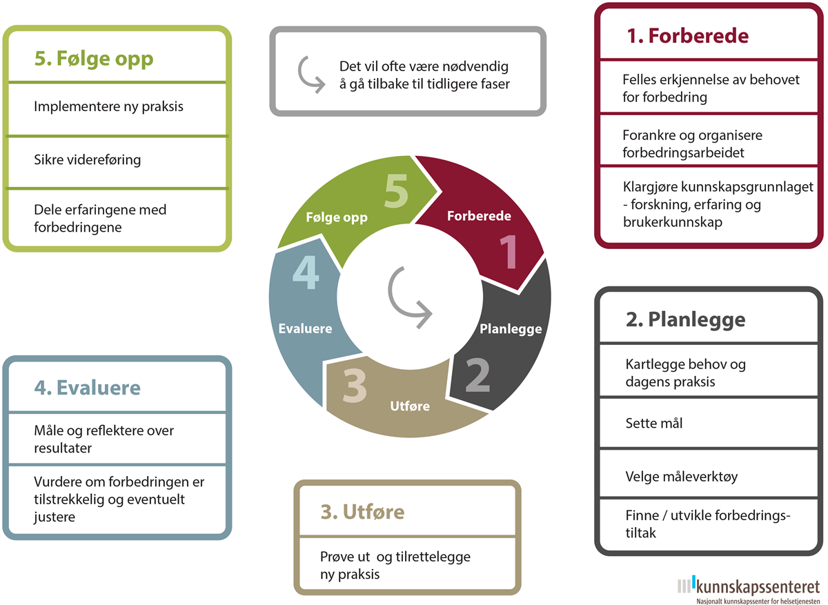 Prosessen bruker modell for kvalitetsforbedring, og har involvert ledere, ansatte og brukere, og hatt fokus både på struktur (organisasjonskart, stillingsbeskrivelser, osv), infrastruktur (møteplasser, informasjonsdeling, osv) og kultur i organisasjonen.