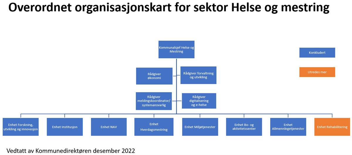 Nytt organisasjonskart ble vedtatt av kommunedirektøren i desember 2022.